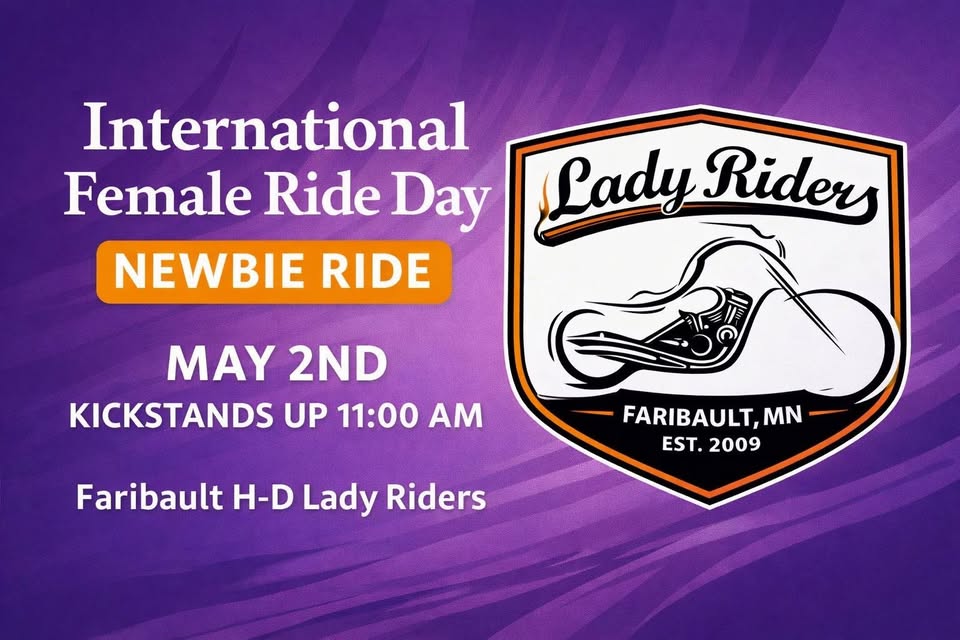 ️ International Female Ride Day – Beginner Women’s Ride ️ Friday, May 2 Celebrate International Female Ride Day with a relaxed, beginner-friendly ride for women riders! New riders and recent Riding Academy grads are especially welcome. This will be a short, local ride at an easy pace — perfect for building confidence, getting some group riding experience, and meeting new riding friends. Meet at: Faribault Harley-Davidson Meet Time: 10:00 AM ️ Ride Time: 11:00 AM ️ Destination: To be determined Ride your own ride and celebrate women who ride everywhere. #InternationalFemaleRideDay #IFRD #WomenWhoRide #FaribaultHarley #NewRiderFriendly